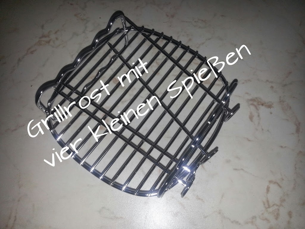 - Grillrost mit vier kleinen Grillspießen (die im übrigen total süß sind).