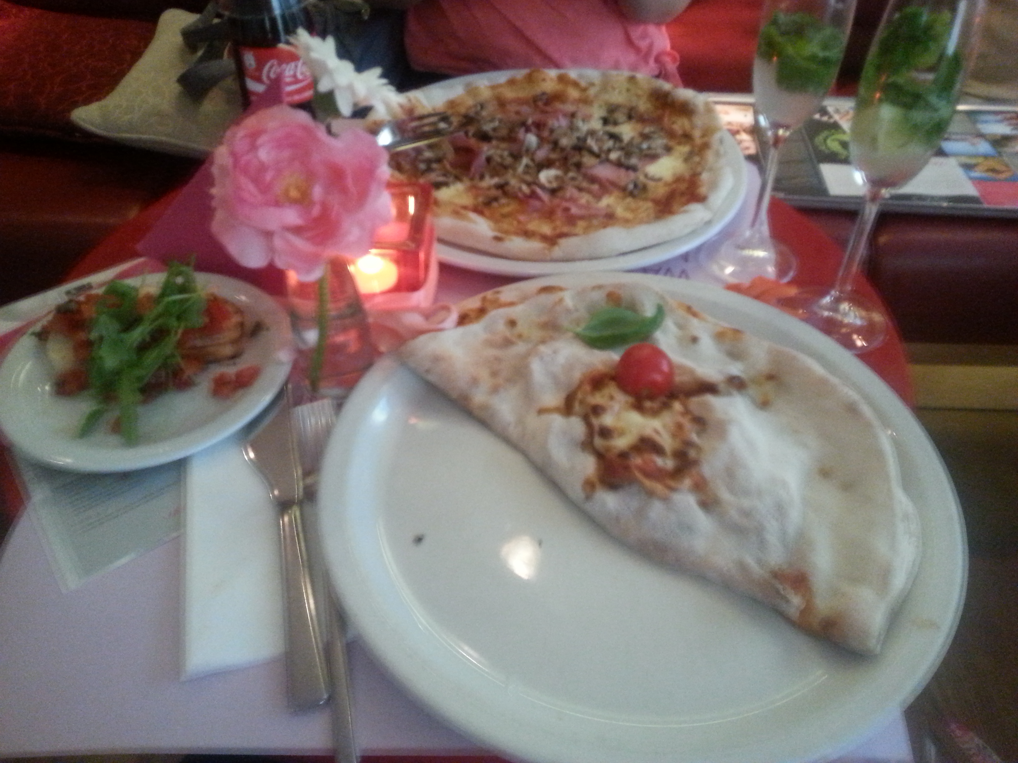 Da das Vapiano zu unserer Ankunft noch angenehm leer und nicht so überfüllt wie sonst oft war, ging es mit der Bestellung des Essens super fix. So haben wir unsere Pizza und Calzone bestellt und haben kurz gewartet um uns dann gierig auf unser Essen zu stürzen.